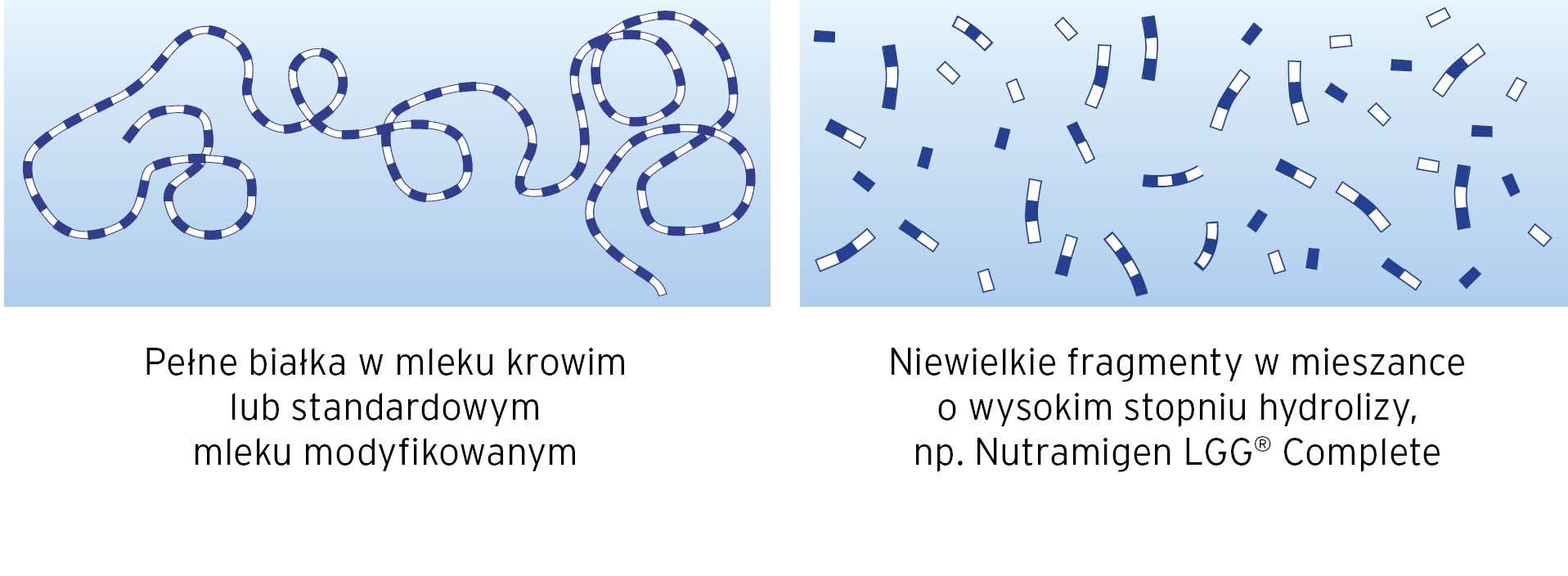 Nutramigen LGG® Complete to preparat mlekozastępczy zawierający hydrolizat kazeiny o wysokim stopniu hydrolizy do stosowania u niemowląt z łagodną lub umiarkowaną alergią na białko mleka krowiego. Jest to mieszanka hipoalergiczna, co oznacza, że została specjalnie opracowana w taki sposób, aby nie wywoływać reakcji alergicznych u większości niemowląt z alergią na białko mleka krowiego. Nutramigen LGG® Complete to żywność specjalnego przeznaczenia medycznego i powinien być stosowany pod nadzorem lekarza.