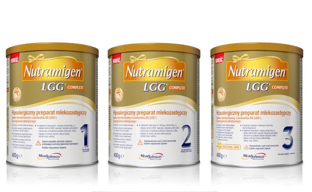Hipoalergiczne preparaty mlekozastępcze dla niemowląt i dzieci, zawierające hydrolizat kazeiny o wysokim stopniu hydrolizy i LGG, do postępowania dietetycznego w łagodnej i umiarkowanej alergii na białko mleka krowiego Dostępne w statusie refundowanym w odpłatności 30%, na zalecenie lekarza, na receptę.