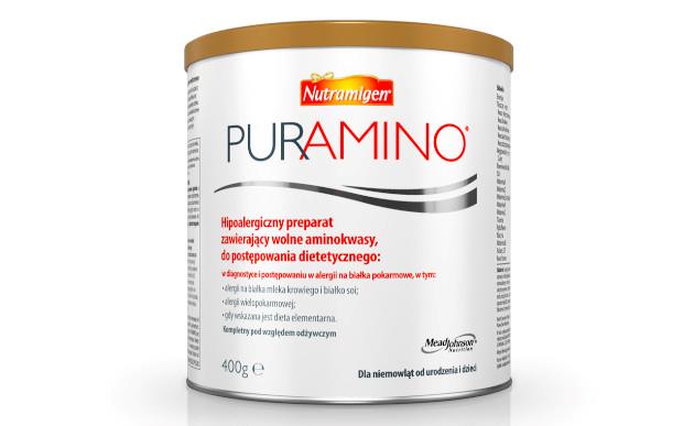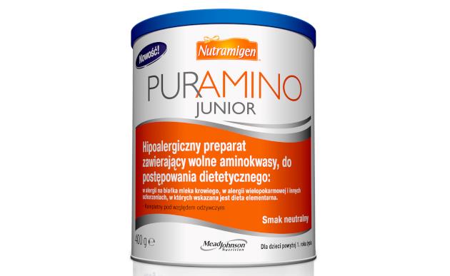 Nutramigen PURAMINO JUNIOR jest hipoalergicznym preparatem zawierającym wolne aminokwasy, przeznaczonym dla dzieci z alergią na białko mleka krowiego, alergią na wiele pokarmów, także dla tych, które nie tolerują lub nadal reagują alergią na hydrolizat o wysokim stopniu hydrolizy białka.