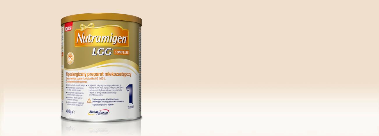 Nutramigen 1 LGG® Complete to hipoalergiczny preparat mlekozastępczy zawierający hydrolizat kazeiny o wysokim stopniu hydrolizy do stosowania u niemowląt z alergią na białko mleka krowiego od urodzenia. Jest to produkt kompletny pod względem odżywczym, dzięki czemu może być stosowany jako wyłączne źródło żywienia, spełniając codzienne potrzeby niemowląt z alergią na białko mleka krowiego.