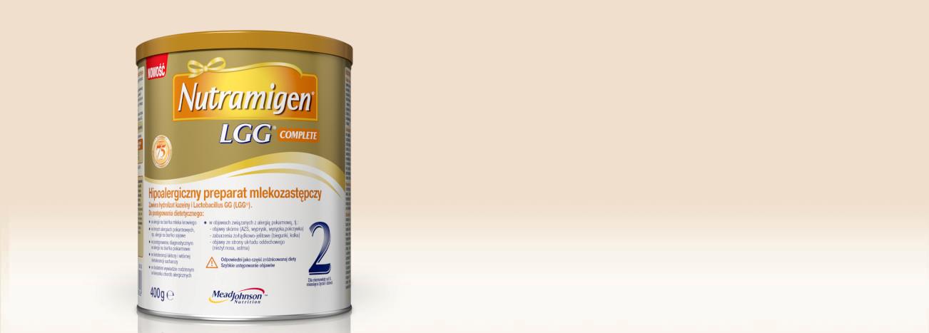 Nutramigen 2 LGG® Complete to hipoalergiczny preparat mlekozastępczy zawierający hydrolizat kazeiny o wysokim stopniu hydrolizy do stosowania u niemowląt z alergią na białko mleka krowiego od 6 miesiąca życia i dzieci, w ramach zróżnicowanej diety.